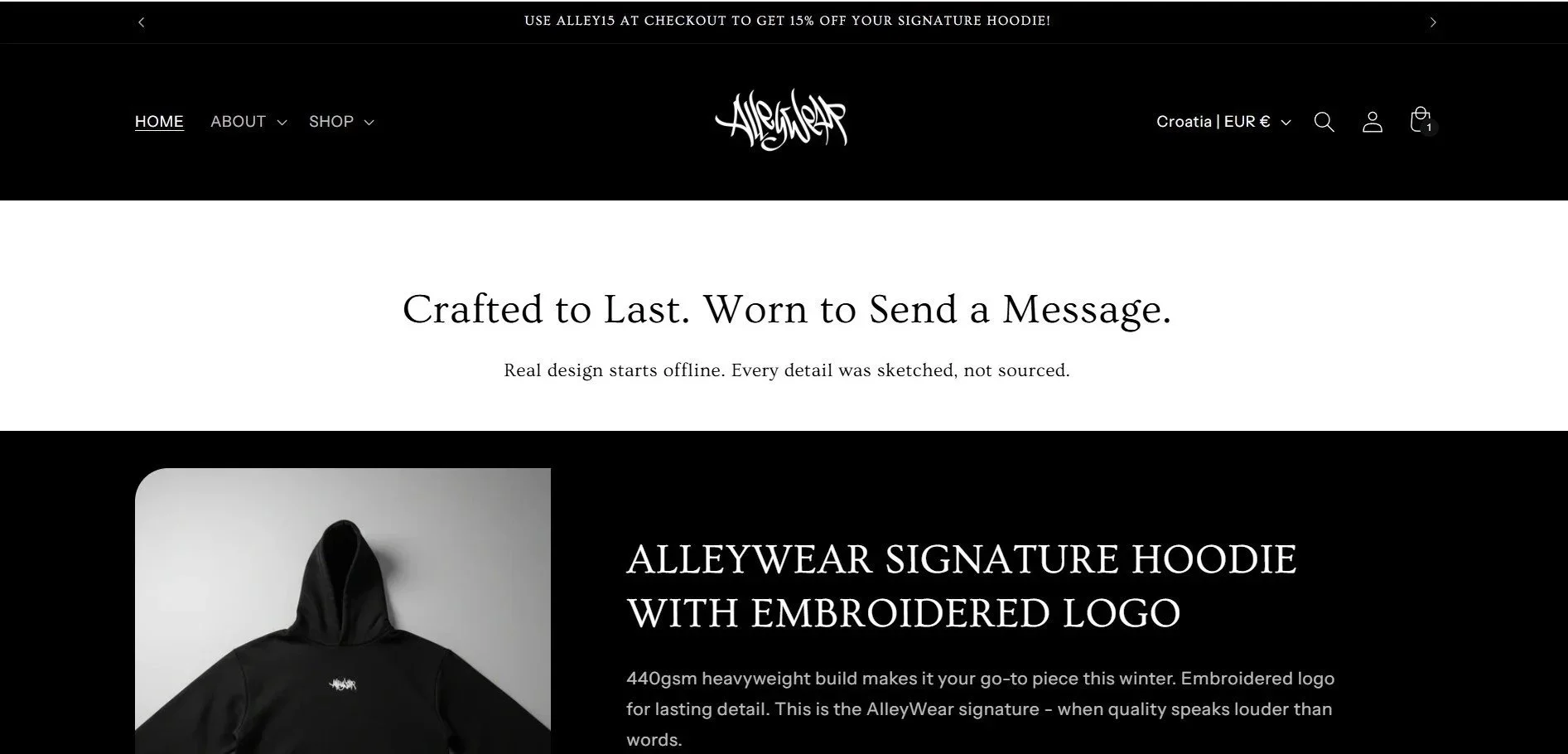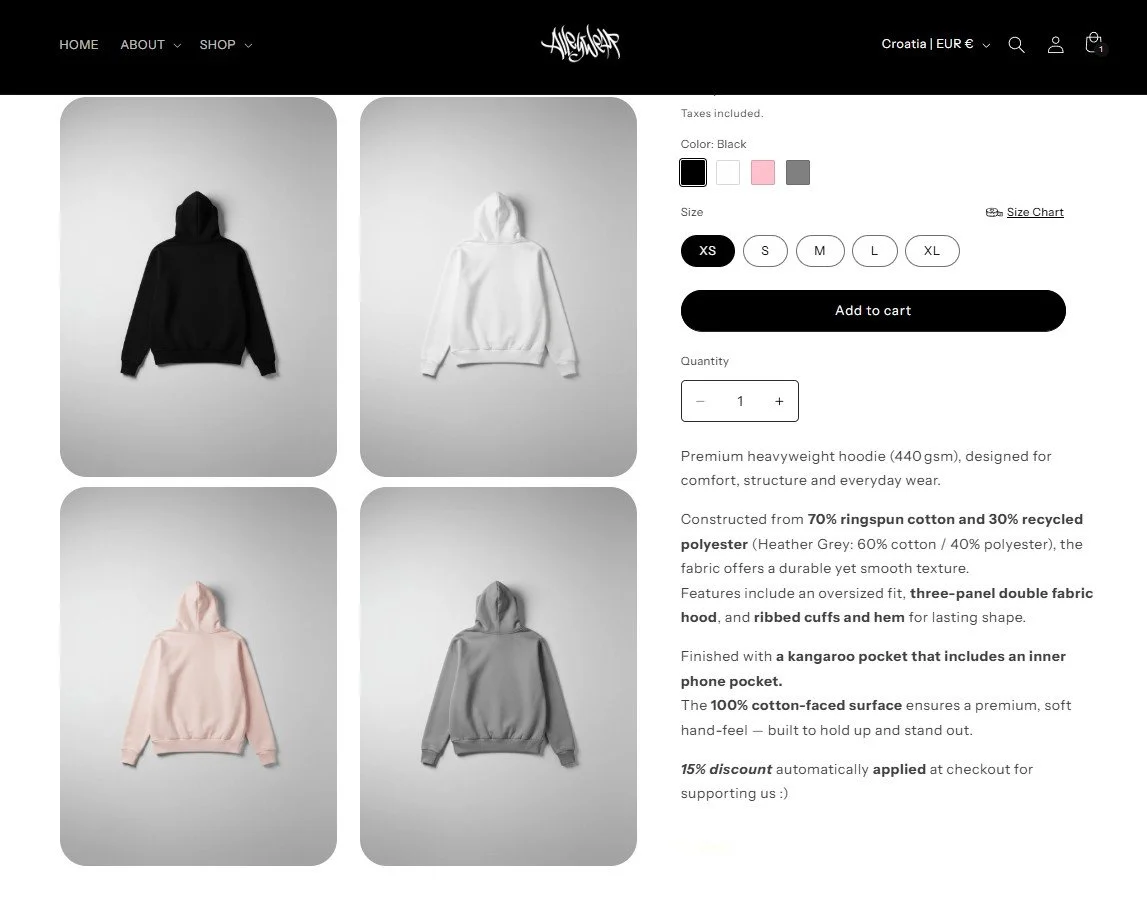 E-commerce webshop razvijen na Shopify platformi, s fokusom na premium prezentaciju proizvoda i jasno vođeno korisničko iskustvo.